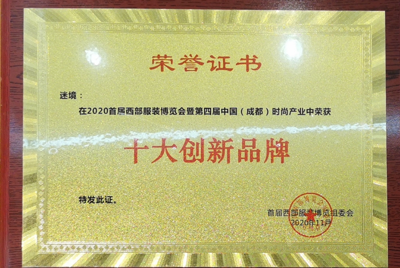 2020年荣获西部服装博览会十大创新品牌